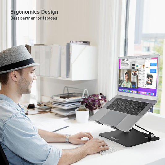 LS10 Aluminum Laptop Stand, Ergonomic Adjustable Notebook Tablet Stand, Computer Holder Compatible with Air, Pro, Dell, HP, Lenovo More 10-14" Laptops, Black